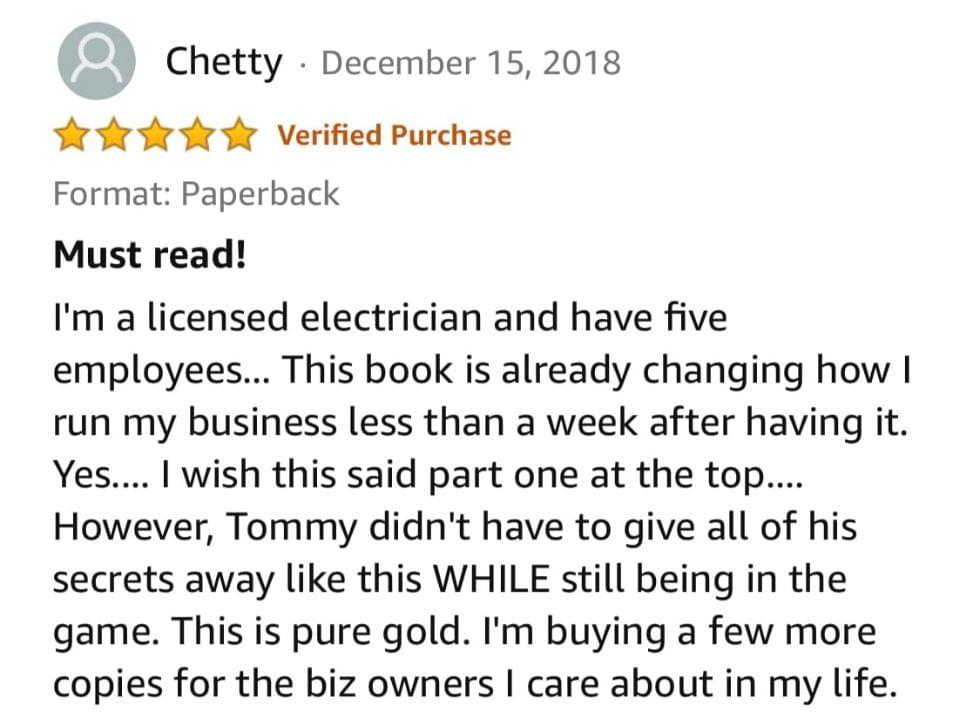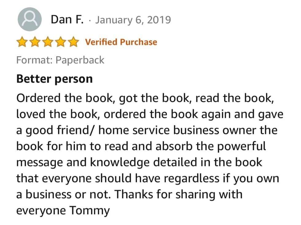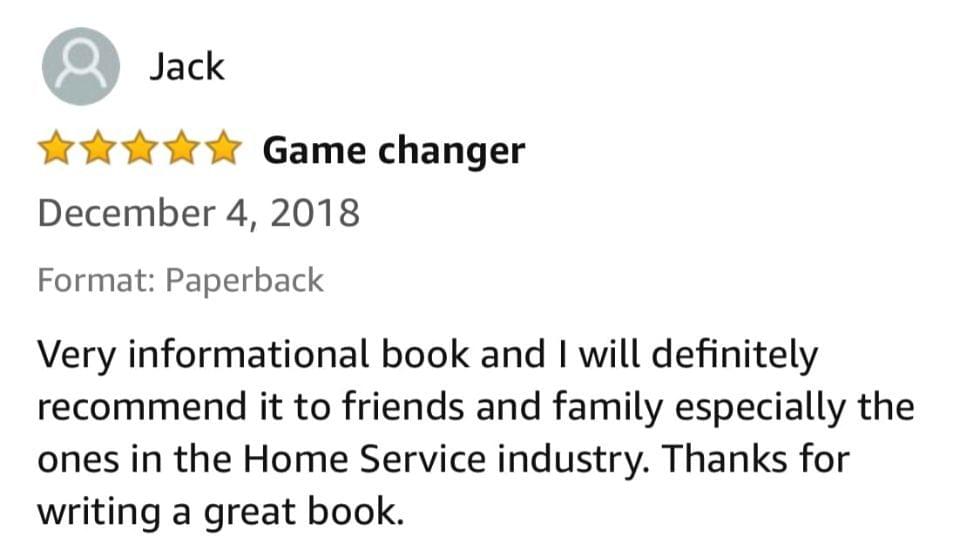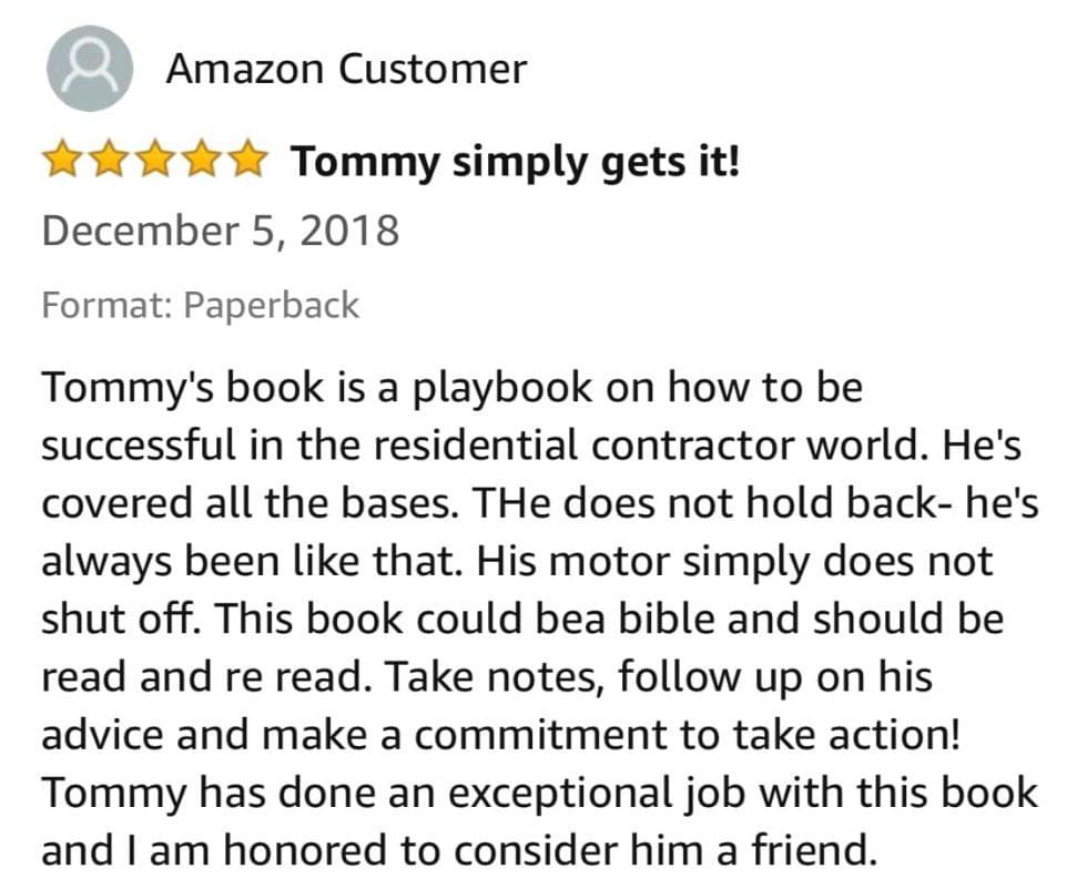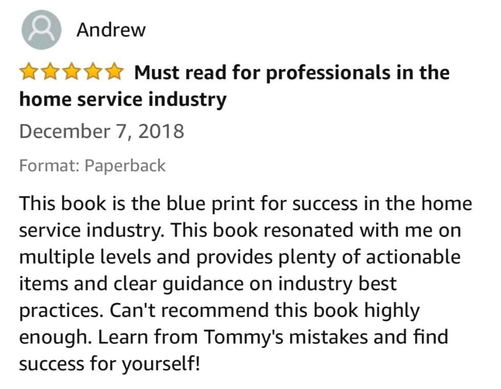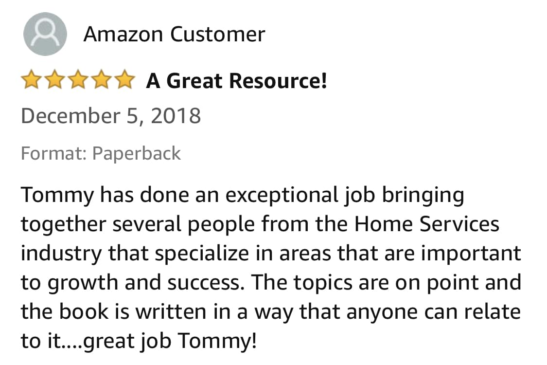 "  The information in this book has not only been proven in Tommy’s own business; he has also shared these tactics and strategies with others who have gone on to build their own home service empires. You don’t have to do everything in this book to be successful, all you need is an open mind and the willingness to implement these strategies at the most basic level—because your competition never will. "